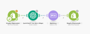 We built an automated workflow using Make.com + OpenAI that generates high-converting product descriptions automatically for Shopify products.